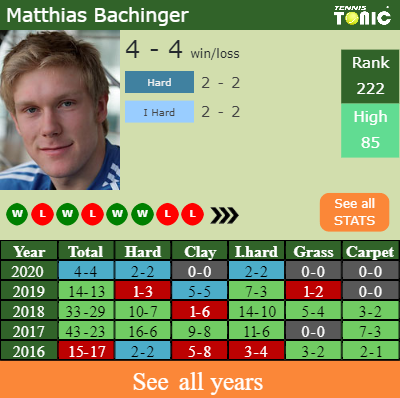 Talking about his overall career, Bachinger has an overall 419-356 record. He has positive 127-89 record on indoor hard courts.