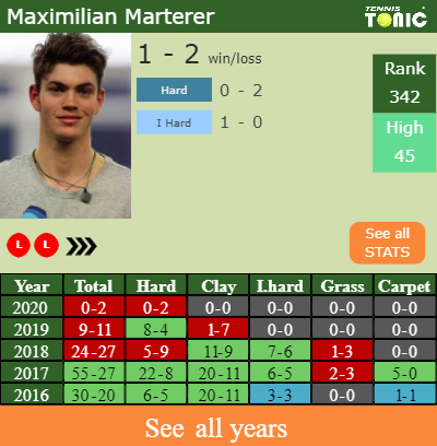 In terms of his career, Maximilian has an overall 145-121 record. He has positive 22-18 record on indoor hard courts.