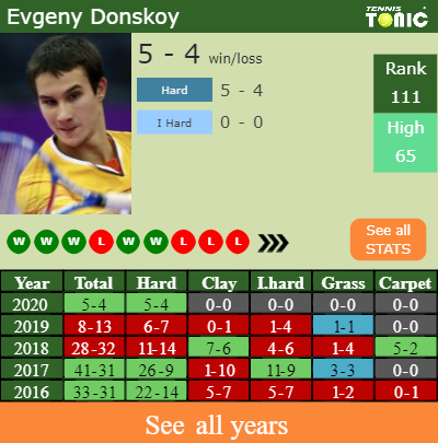 See updated oddsAs per the initial odds, Evgeny Donskoy is the pick to win this match.