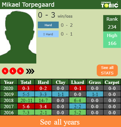 The Dane has a 0-3 win-loss record in 2020, 0-1 on indoor hard courts (See FULL STATS).