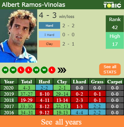 Ramos has a 4-3 win-loss record in 2020, 2-1 on clay (See FULL STATS).
