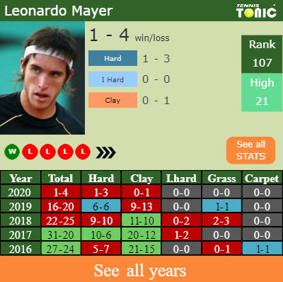 In terms of his career, Leonardo has an overall 396-325 record. He has positive 250-170 record on clay.