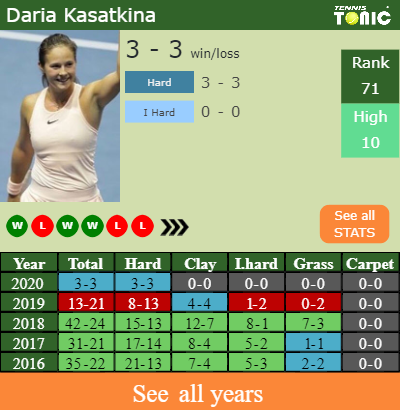 Darya has a 3-3 win-loss record in 2020, 0-0 on indoor hard courts (See FULL STATS).