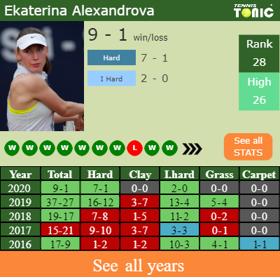 The Russian has a 9-1 win-loss record in 2020, 2-0 on indoor hard courts (See FULL STATS).
