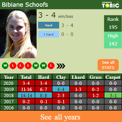 In terms of her career, Schoofs has an overall 43-51 record. She has negative 22-27 record on hard.