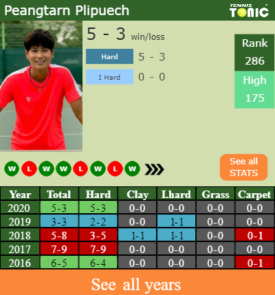 The Thai has a 5-3 win-loss record in 2020, 5-3 on hard (See FULL STATS).