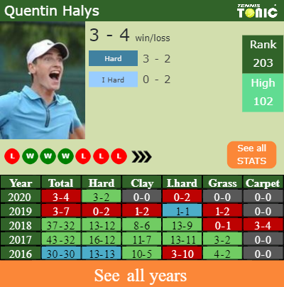 Halys has a 3-4 win-loss record in 2020, 0-2 on indoor hard courts (See FULL STATS).