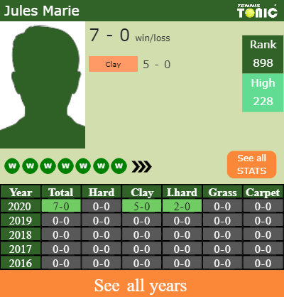 Marie has a winning win-loss record in the last 6 years having won 57% of his matches (41-31). 2-0 on indoor hard courts in 2020. Talking about his performance on the same surface of this tournament, Marie has a 30-34 record in the last 6 years on indoor hard courts.