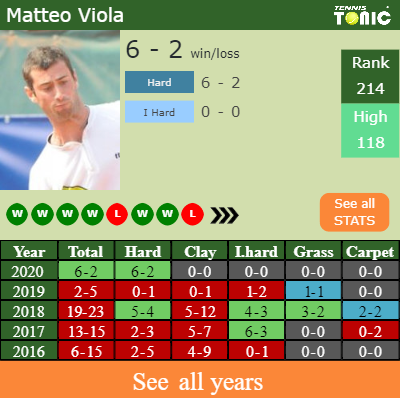 The Italian has a 6-2 win-loss record in 2020, 0-0 on indoor hard courts (See FULL STATS).