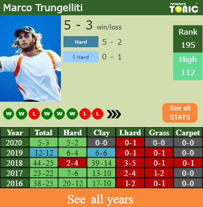 Talking about his overall career, Trungelliti has an overall 244-197 record. He has negative 10-15 record on indoor hard courts.
