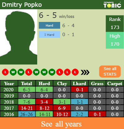 The pick for Tennis Tonic is Dmitry Popko who should win in 2 sets.