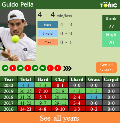 Pella has a 4-4 win-loss record in 2020, 0-1 on clay (See FULL STATS).