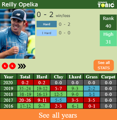 The American has a 0-2 win-loss record in 2020, 0-0 on indoor hard courts (See FULL STATS).