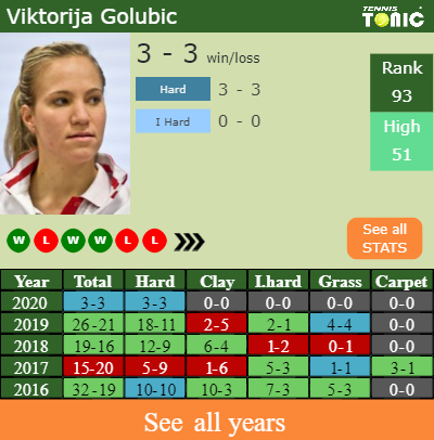 Golubic has a 3-3 win-loss record in 2020, 3-3 on hard (See FULL STATS).