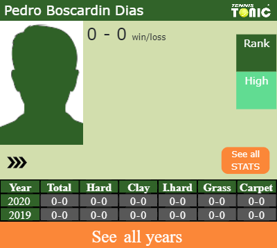 Talking about his overall career, Boscardin Dias has an overall 0-0 record. He has flat 0-0 record on clay.