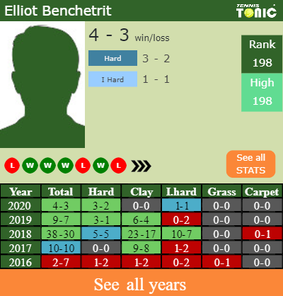 Benchetrit has a 4-3 win-loss record in 2020, 1-1 on indoor hard courts (See FULL STATS).