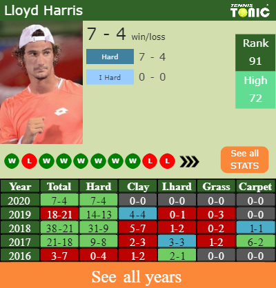 Lloyd has a 7-4 win-loss record in 2020, 0-0 on indoor hard courts (See FULL STATS).