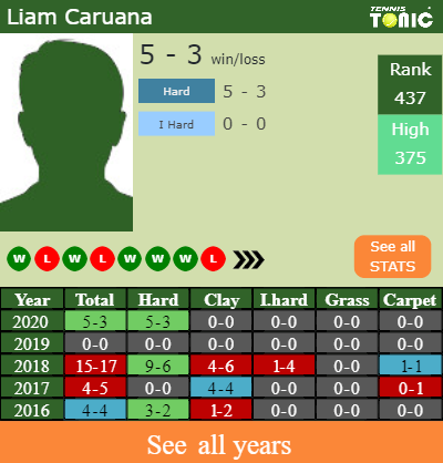 Liam has a 5-3 win-loss record in 2020, 0-0 on indoor hard courts (See FULL STATS).