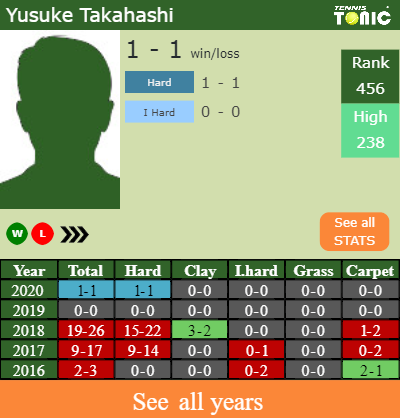Yusuke has a 1-1 win-loss record in 2020, 0-0 on indoor hard courts (See FULL STATS).