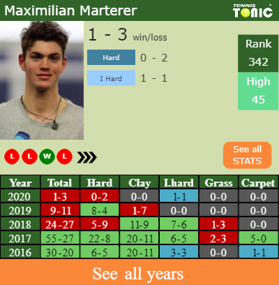 Talking about his overall career, Marterer has an overall 146-122 record. He has positive 23-19 record on indoor hard courts.