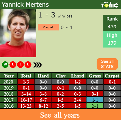 In terms of his career, Mertens has an overall 120-200 record. He has negative 31-53 record on indoor hard courts.