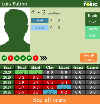 In terms of his career, Patino has an overall 16-42 record. He has negative 12-30 record on hard.