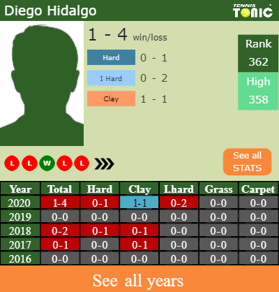 The Ecuadorian has a 1-4 win-loss record in 2020, 0-1 on hard (See FULL STATS).