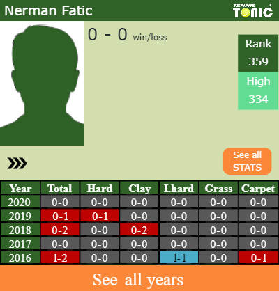 Talking about his overall career, Fatic has an overall 1-5 record. He has flat 1-1 record on indoor hard courts.