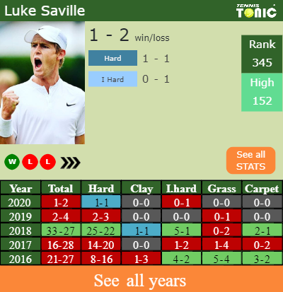 Saville has a 1-2 win-loss record in 2020, 1-1 on hard (See FULL STATS).