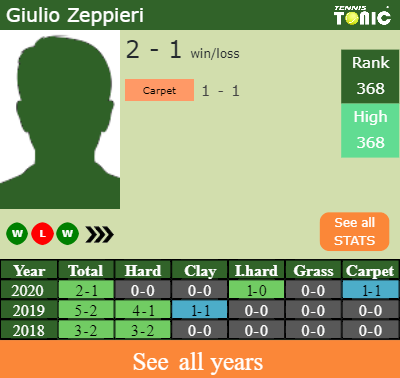 Zeppieri has a fantastic win-loss record in the last 3 years having won 100% of his matches (3-0). 1-0 on indoor hard courts in 2020. In connection with his performance on the same surface of this event, Zeppieri has a 10-5 win-loss record in the last 3 years on indoor hard courts.