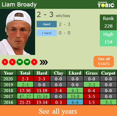 The Brit has a 2-3 win-loss record in 2020, 0-0 on indoor hard courts (See FULL STATS).