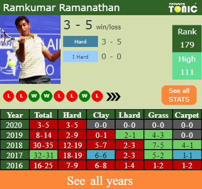 Ramkumar has a 3-5 win-loss record in 2020, 3-5 on hard (See FULL STATS).