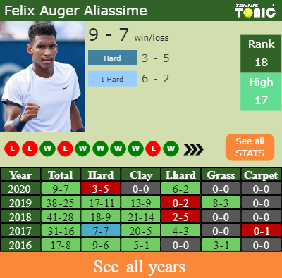 Felix has a 9-7 win-loss record in 2020, 6-2 on indoor hard courts (See FULL STATS).