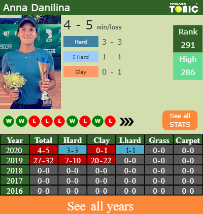 Anna has a 4-5 win-loss record in 2020, 3-3 on hard (See FULL STATS).