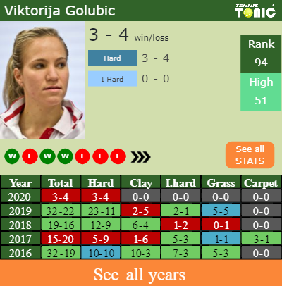 Golubic has a 3-4 win-loss record in 2020, 3-4 on hard (See FULL STATS).