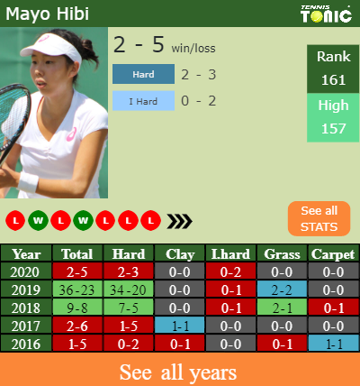 In terms of her career, Hibi has an overall 59-53 record. She has positive 52-39 record on hard.