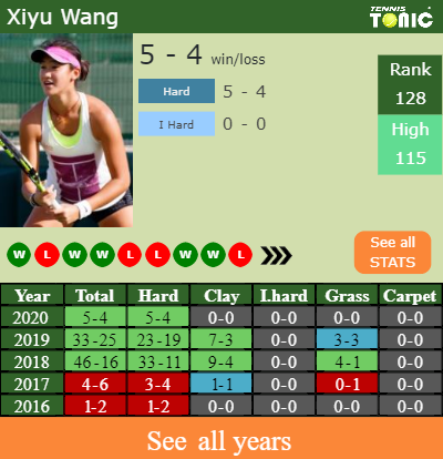Wang has a 5-4 win-loss record in 2020, 5-4 on hard (See FULL STATS).
