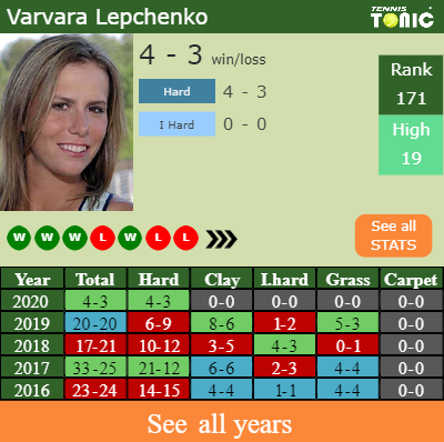 Varvara has a 4-3 win-loss record in 2020, 4-3 on hard (See FULL STATS).