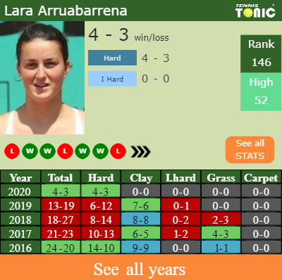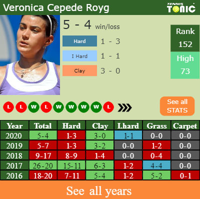 - Veronica Cepede RoygCepede Royg – Lara ArruabarrenaArruabarrena (3-0) – See H2H details