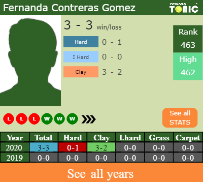 In terms of her career, Contreras Gomez has an overall 3-3 record. She has negative 0-1 record on hard.