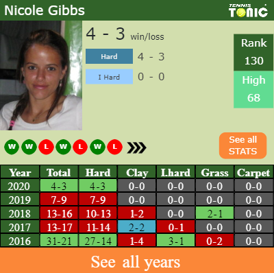 As per the initial odds, Nicole Gibbs is the pick to win this match.