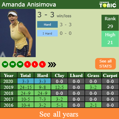 The American has a 3-3 win-loss record in 2020, 3-3 on hard (See FULL STATS).