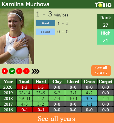 Muchova has a 1-3 win-loss record in 2020, 1-3 on hard (See FULL STATS).
