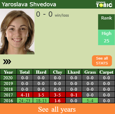 In terms of her career, Yaroslava has an overall 179-159 record. She has positive 93-80 record on hard.