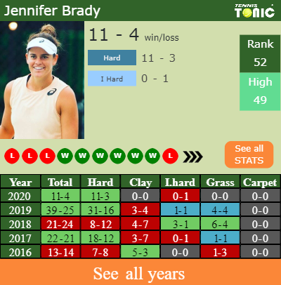 In terms of her career, Brady has an overall 110-95 record. She has positive 78-56 record on hard.
