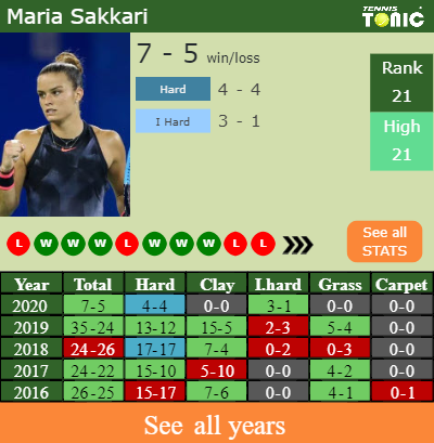 Sakkari’s best result of the current season was reaching the semi-finals in St. Petersburg.