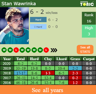 Stan has a 6-2 win-loss record in 2020, 6-2 on hard (See FULL STATS).