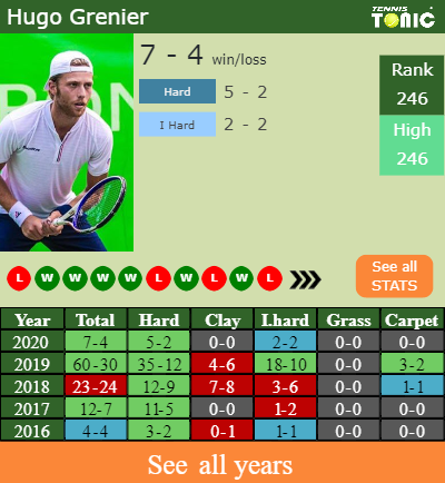 The French Player has a 7-4 win-loss record in 2020, 2-2 on indoor hard courts (See FULL STATS).