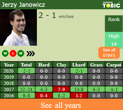 In terms of his career, Janowicz has an overall 194-145 record. He has positive 61-41 record on indoor hard courts.