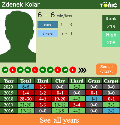 Kolar has a 6-6 win-loss record in 2020, 5-3 on indoor hard courts (See FULL STATS).